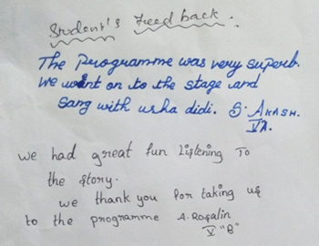 46 students of class five of SMS Thiruneermalai got an opportunity to watch the Karadi Tales musical, “Once upon a Bak Bak tree” on February 4, 2017 at Chetpet, Chennai. The tickets were sponsored by Ratnakar Bank Ltd, through NextGen.