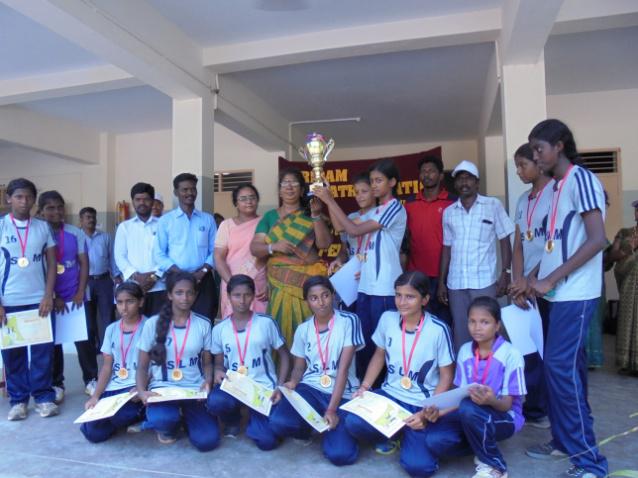 The volleyball team of Shriram Matriculation School came up to the semi-finals where they lost to Anne Matriculation. The throwball team (girls) of SMS too came to the semi-finals where they lost to the Rosily team.
